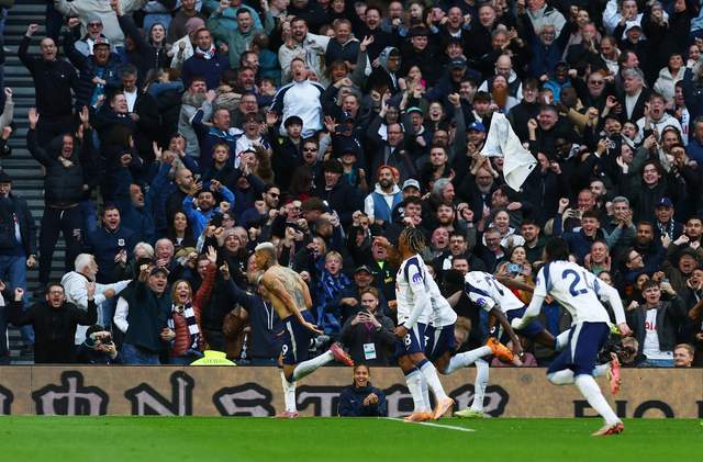 這是熱刺的角球,奧多貝爾禁區外勁射,理查利森原地頭球一蹭,皮球偏出入網,熱刺2-1!